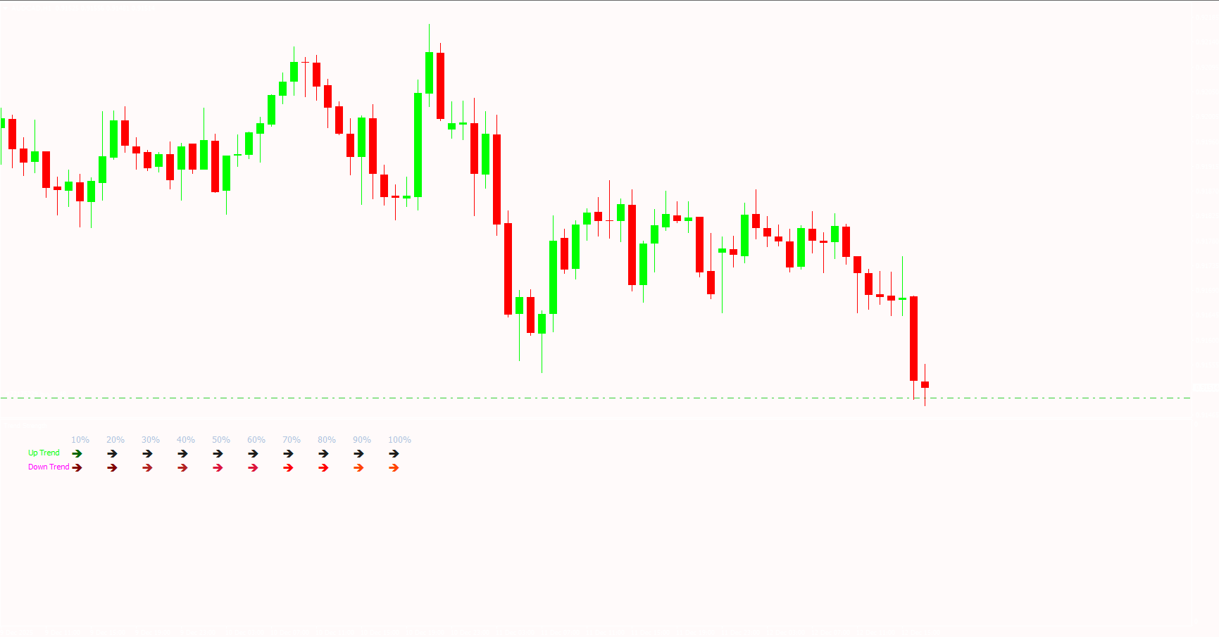 The combination of numerical percentages and visual arrows makes the Trend Strength Indicator accessible for beginners while providing advanced traders with actionable insights for strategy development.