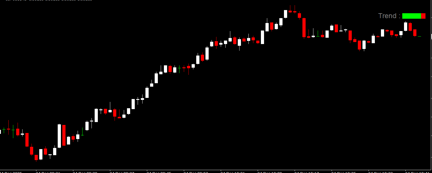 It then plots a dynamic trend line on the chart that updates in real time. The line provides a clear visual representation of whether the market is bullish, bearish, or ranging, helping traders quickly assess market conditions.
