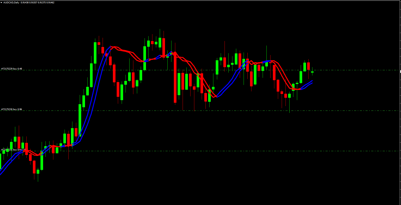 The Trendline indicator uses two dynamic lines to plot trends. Trading involves these simple steps: