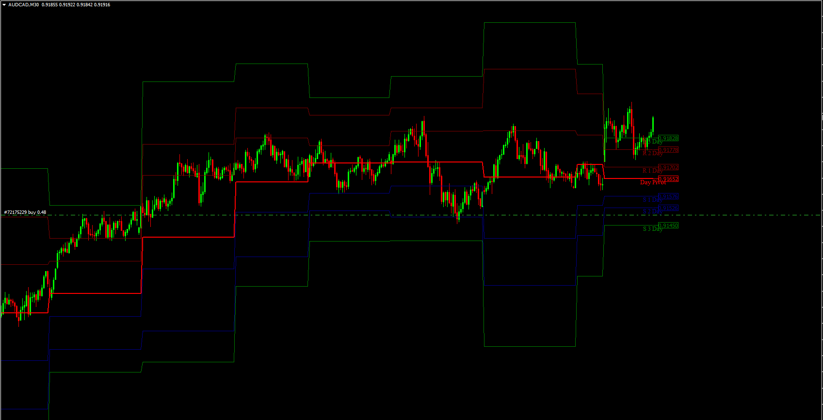 The indicator calculates pivot points using a standard mathematical formula based on the previous day’s trading data:
