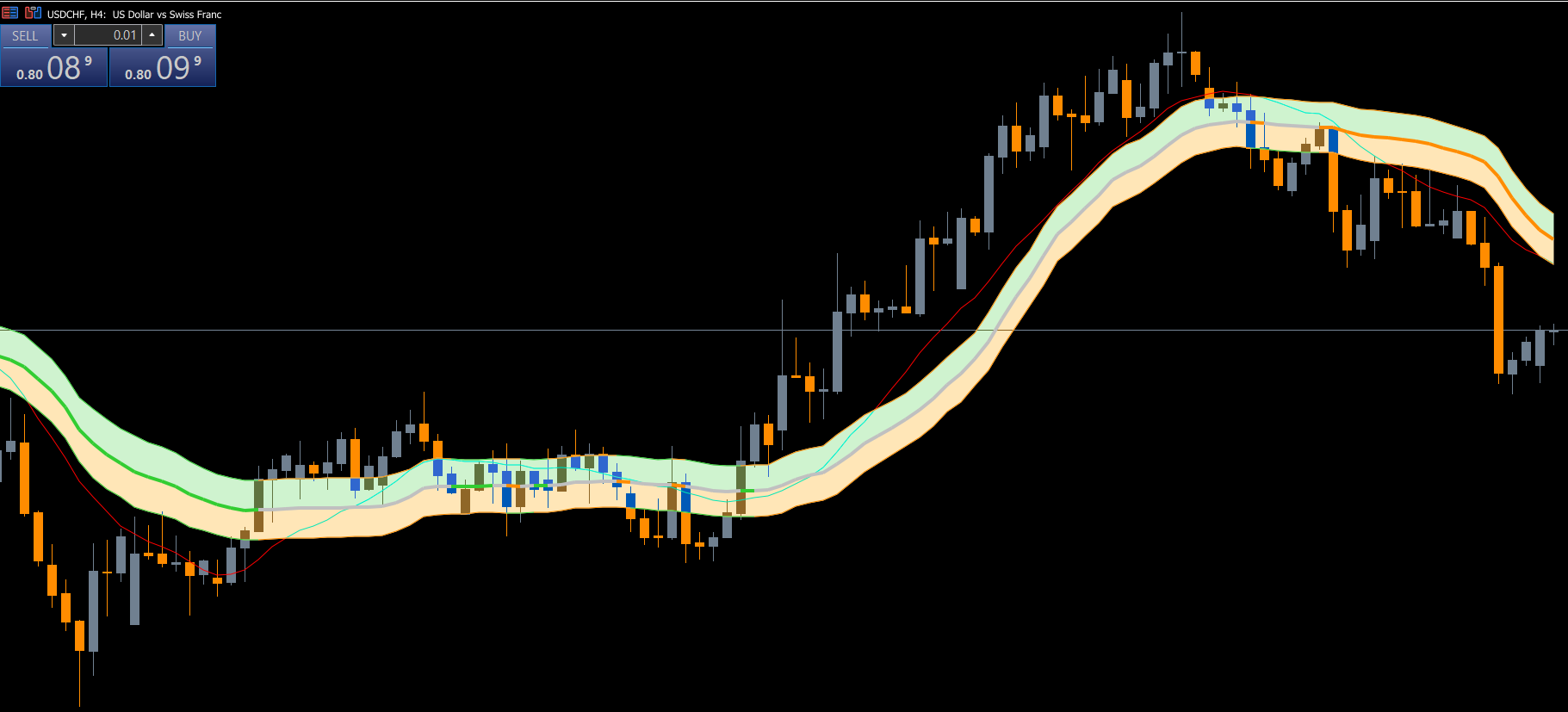 Middle Line: Functions as a trend line indicating the overall market direction.