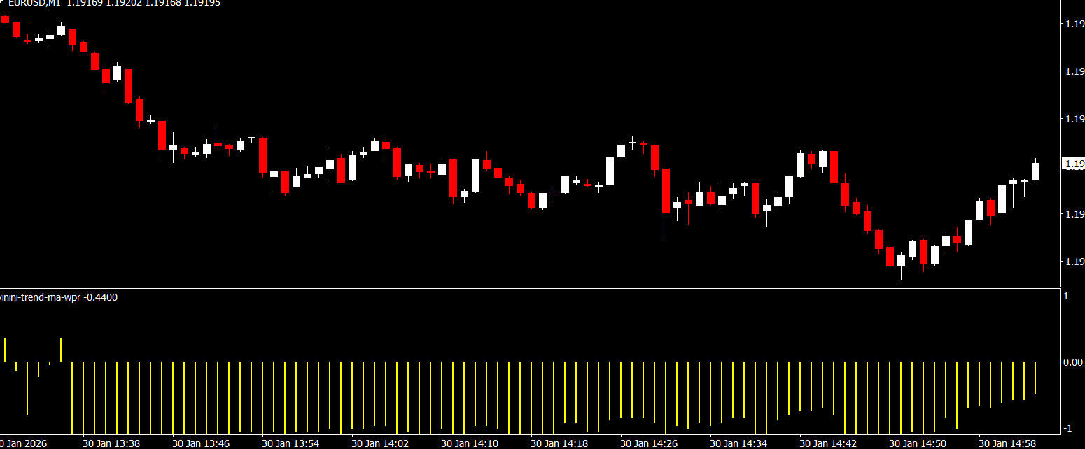 By combining trend and momentum indicators, the Vinini Trend MA WPR Indicator helps traders clearly identify whether the market is trending upward, downward, or preparing for a reversal.