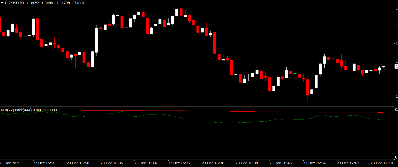 Tracks the average ATR over the same period to provide a reference for historical volatility.