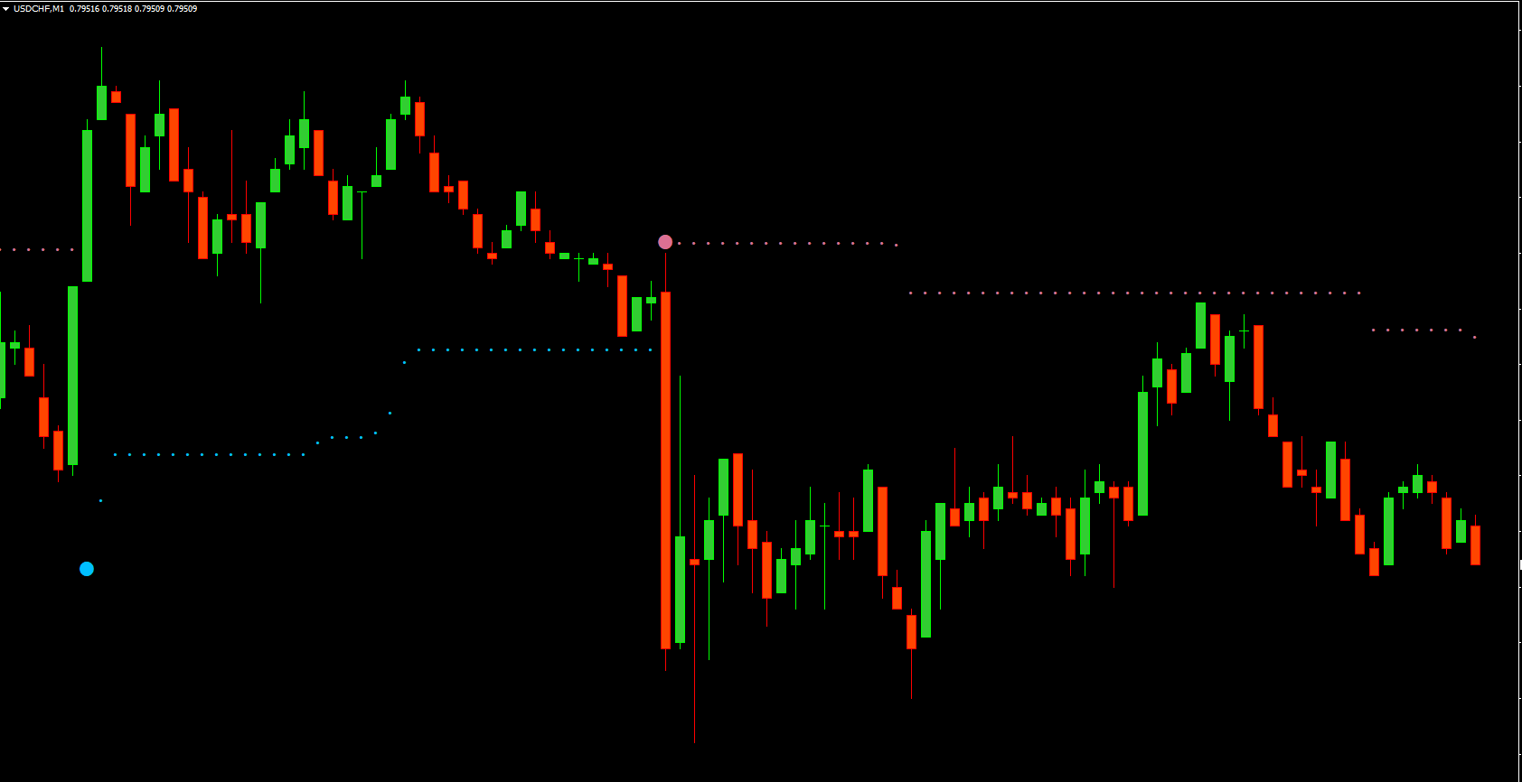 In essence, this indicator paints two distinct dots on the chart: