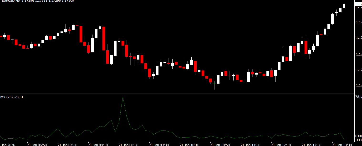 The Volume Rate of Change Indicator MT4 is a momentum-based indicator that calculates the percentage change in trading volume between the current period and a previous one. Instead of focusing solely on price, it highlights how market participation is evolving over time.