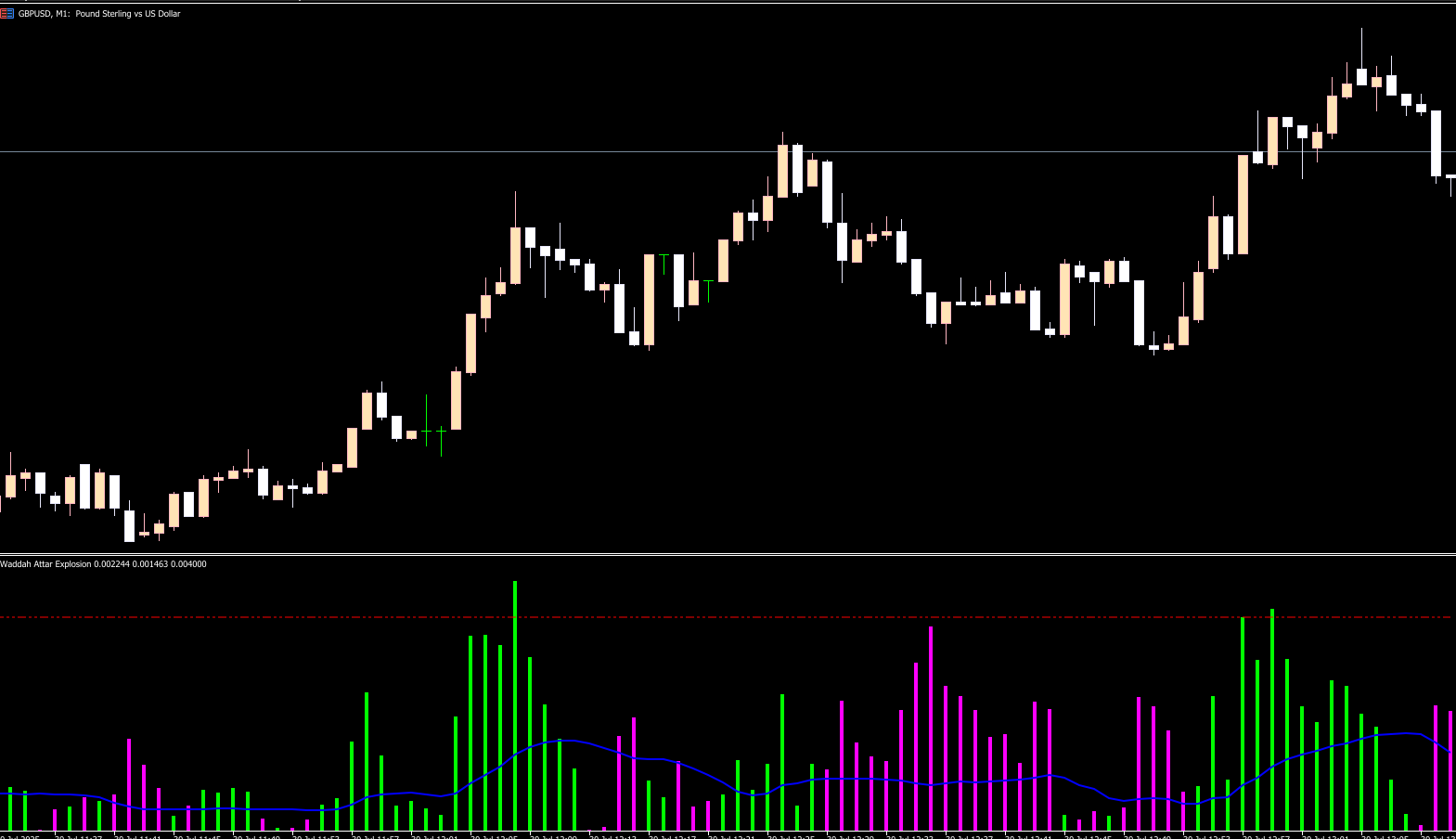 The Waddah Attar Explosion Indicator MT5 is beginner-friendly and works across all MT5 timeframes, from M5 Scalping charts to H4 or daily swing trading setups.