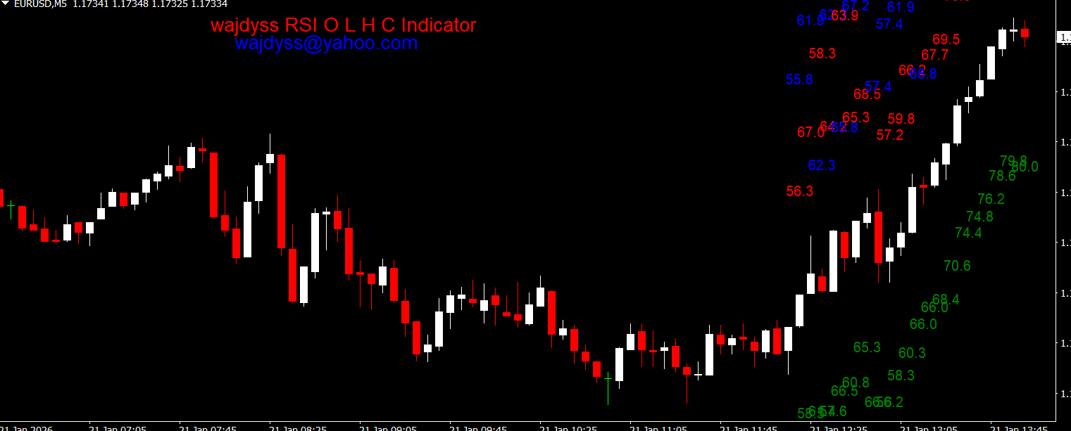The Wajdyss RSI OLHC Indicator MT4 is a powerful and free tool for forex traders who want to analyze Price Action with enhanced precision. By combining the Relative Strength Index (RSI) with open, low, high, and close (OLHC) data, this indicator provides a clear view of market trends and potential reversal points.