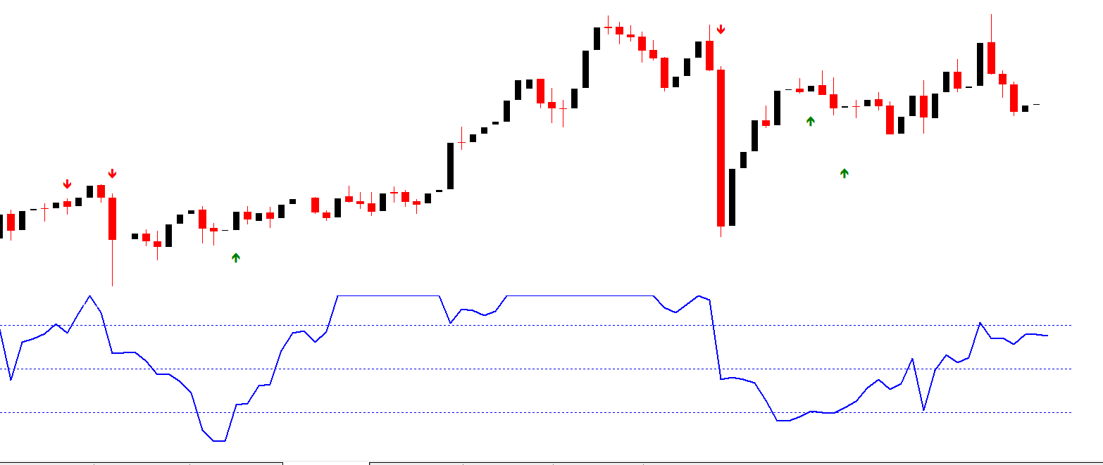 The indicator monitors momentum levels and triggers signals when predefined thresholds are crossed. These thresholds often correspond to: