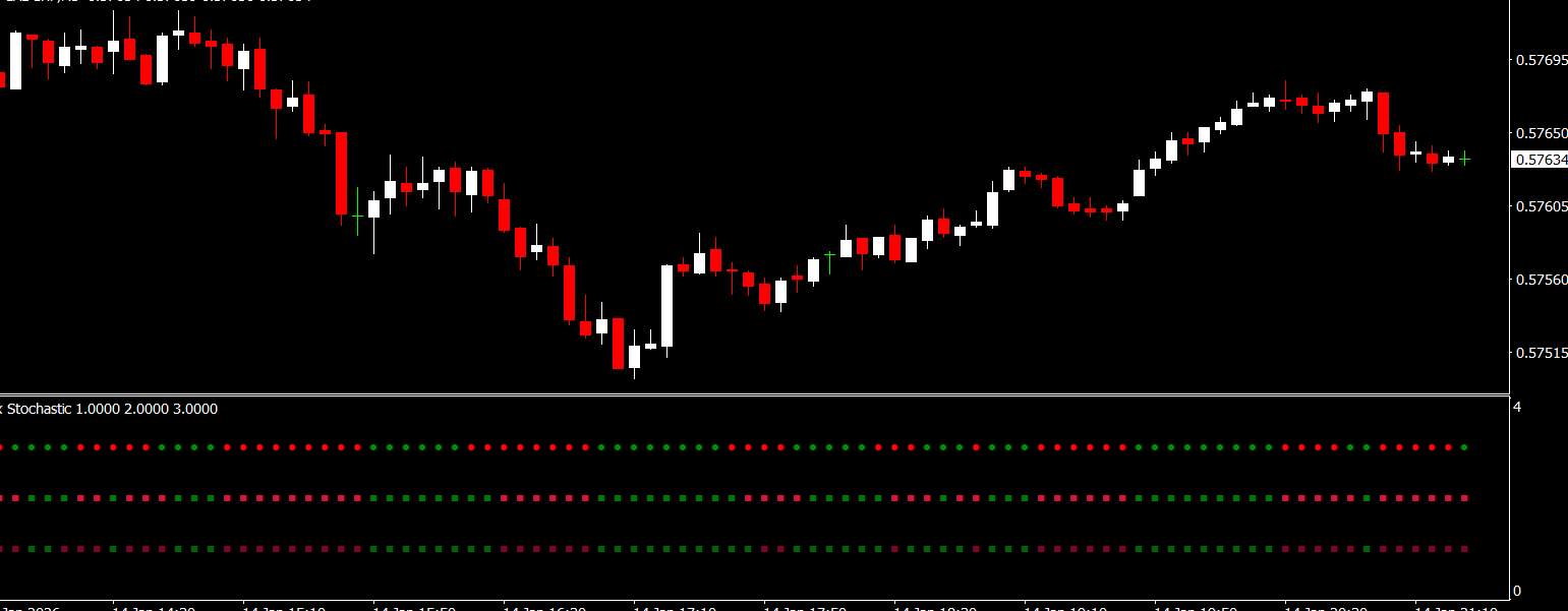 When Stochastic levels reach extreme zones on multiple timeframes, traders can prepare for potential reversals and manage entries more effectively.