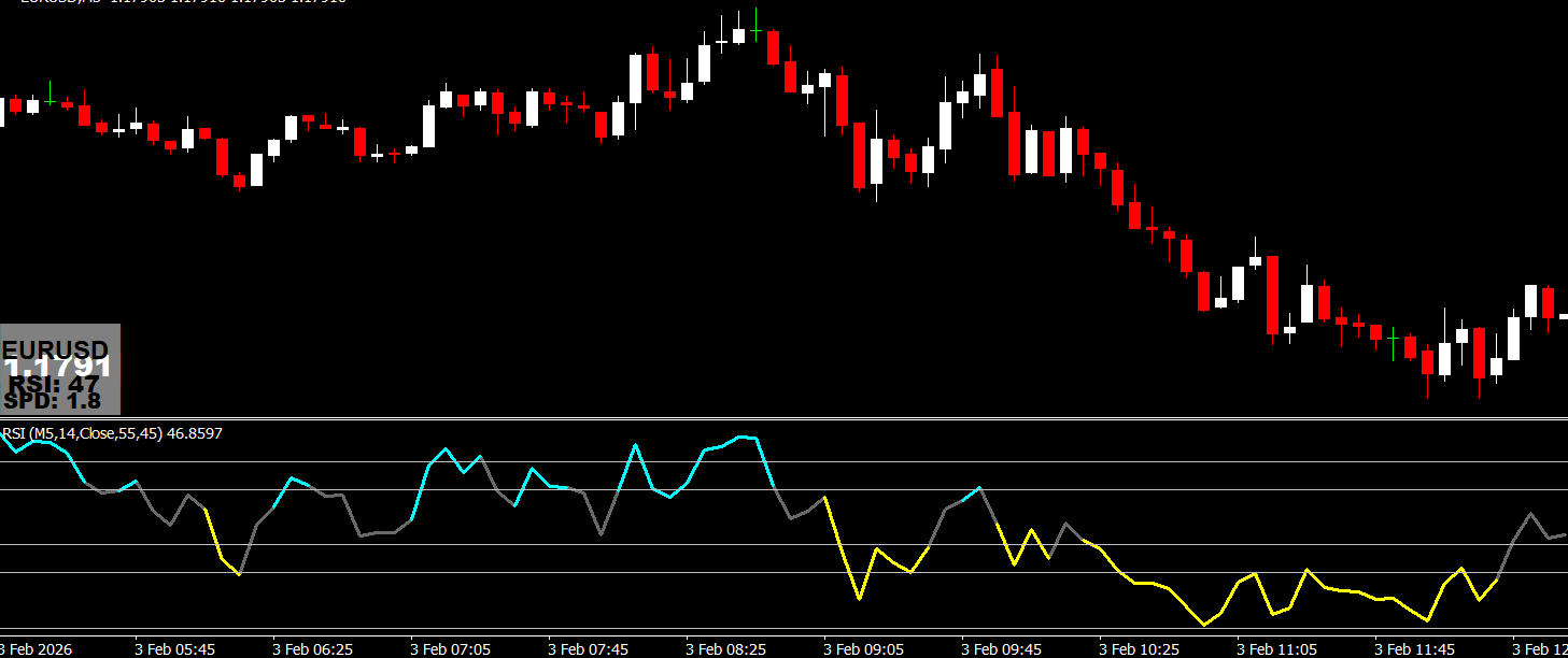 The x10 RSI Trading Indicator measures the momentum of a currency pair over a specified period. The Relative Strength Index produces a value between 0 and 100: