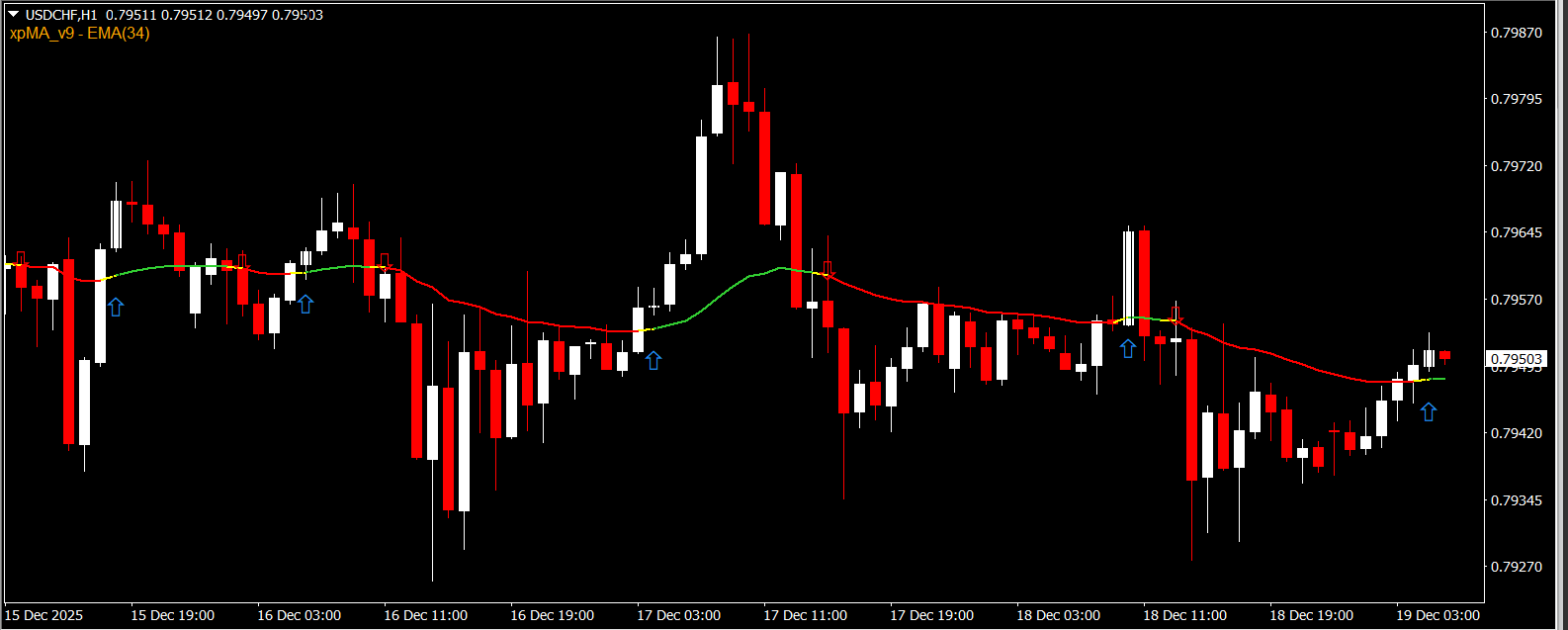 The XPMA Mod Indicator is primarily a trend-following tool. It plots a smooth line based on the EMA directly on the price chart, allowing traders to clearly see whether the market is trending upward or downward.
