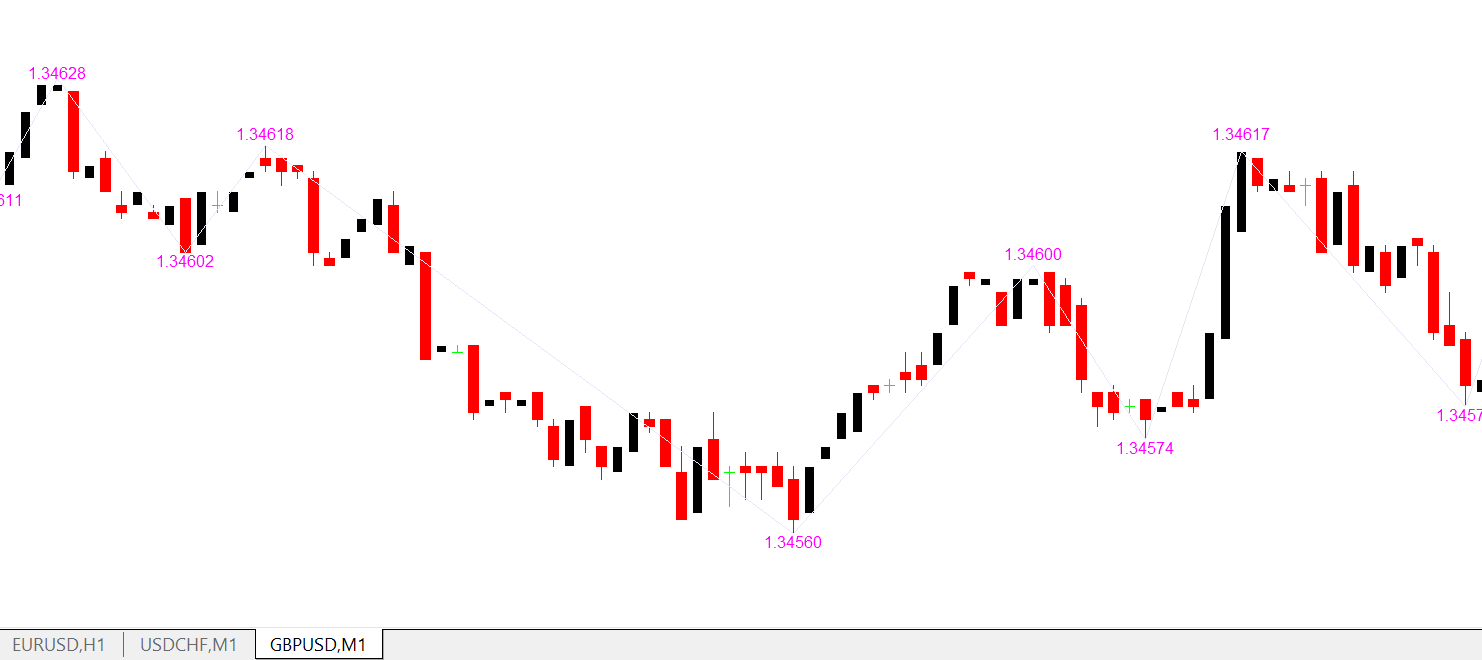 The indicator plots a series of Zig Zag lines on the chart by connecting significant price highs and lows. This simplifies complex price movements, allowing traders to see the overall trend more clearly.