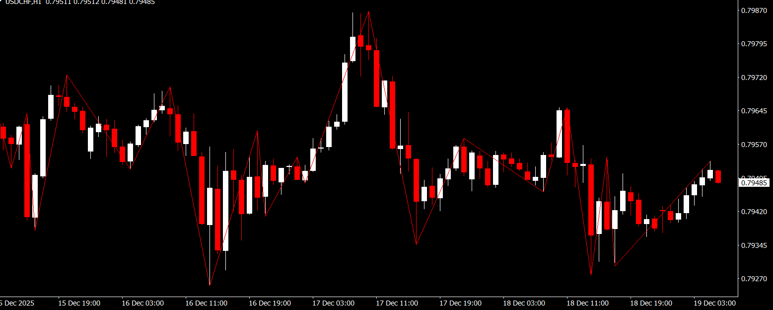 One Zigzag line represents broader market movements, while the second reacts differently to price changes. This combination allows traders to see both major trends and smaller price swings at the same time.